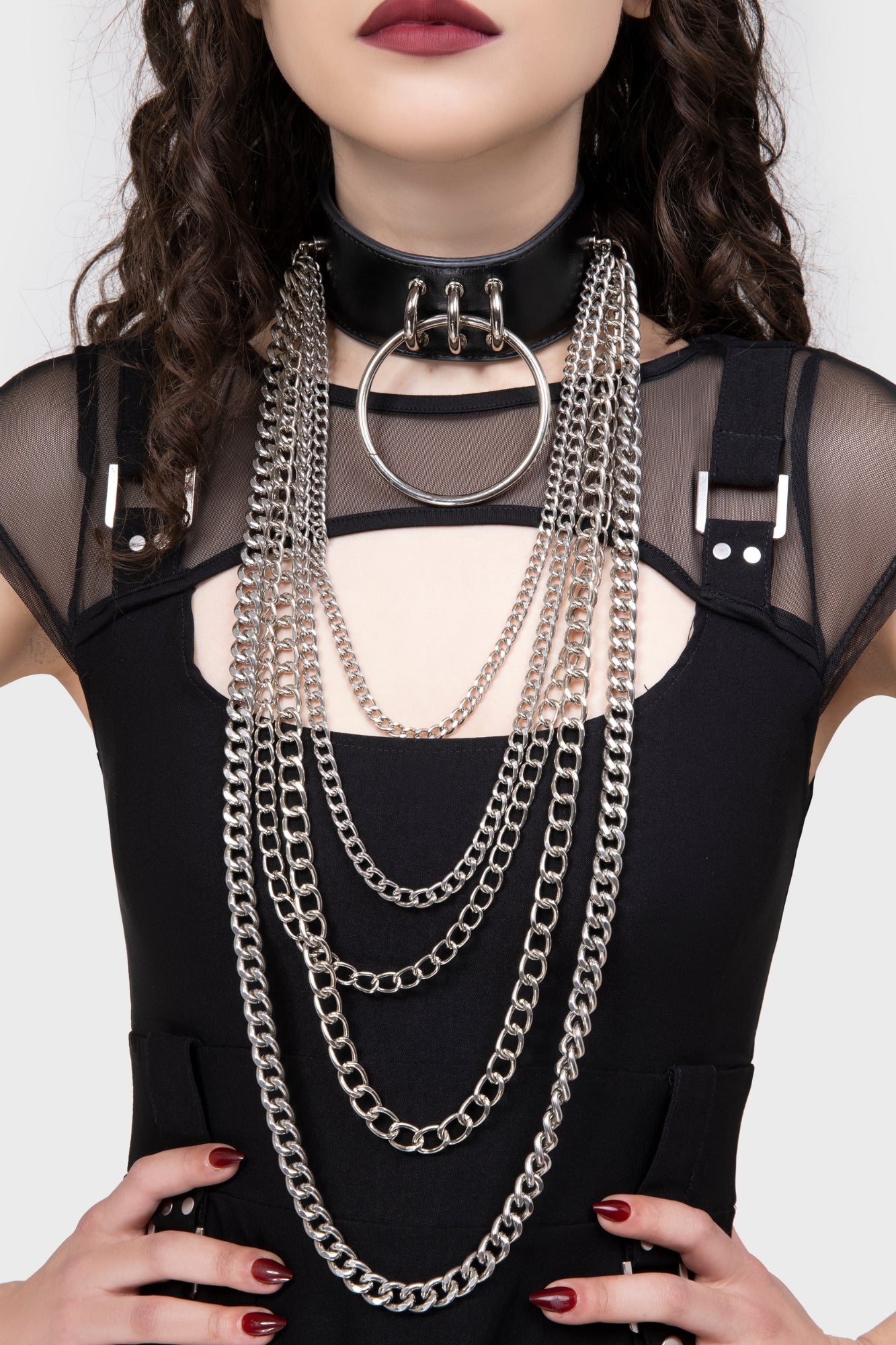 A perfect statement choker, ‘Deeply Destroyed’ combines statement cascading chains with an O-ring detail and fully adjustable back. Brings any outfit to life.