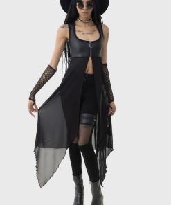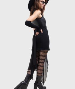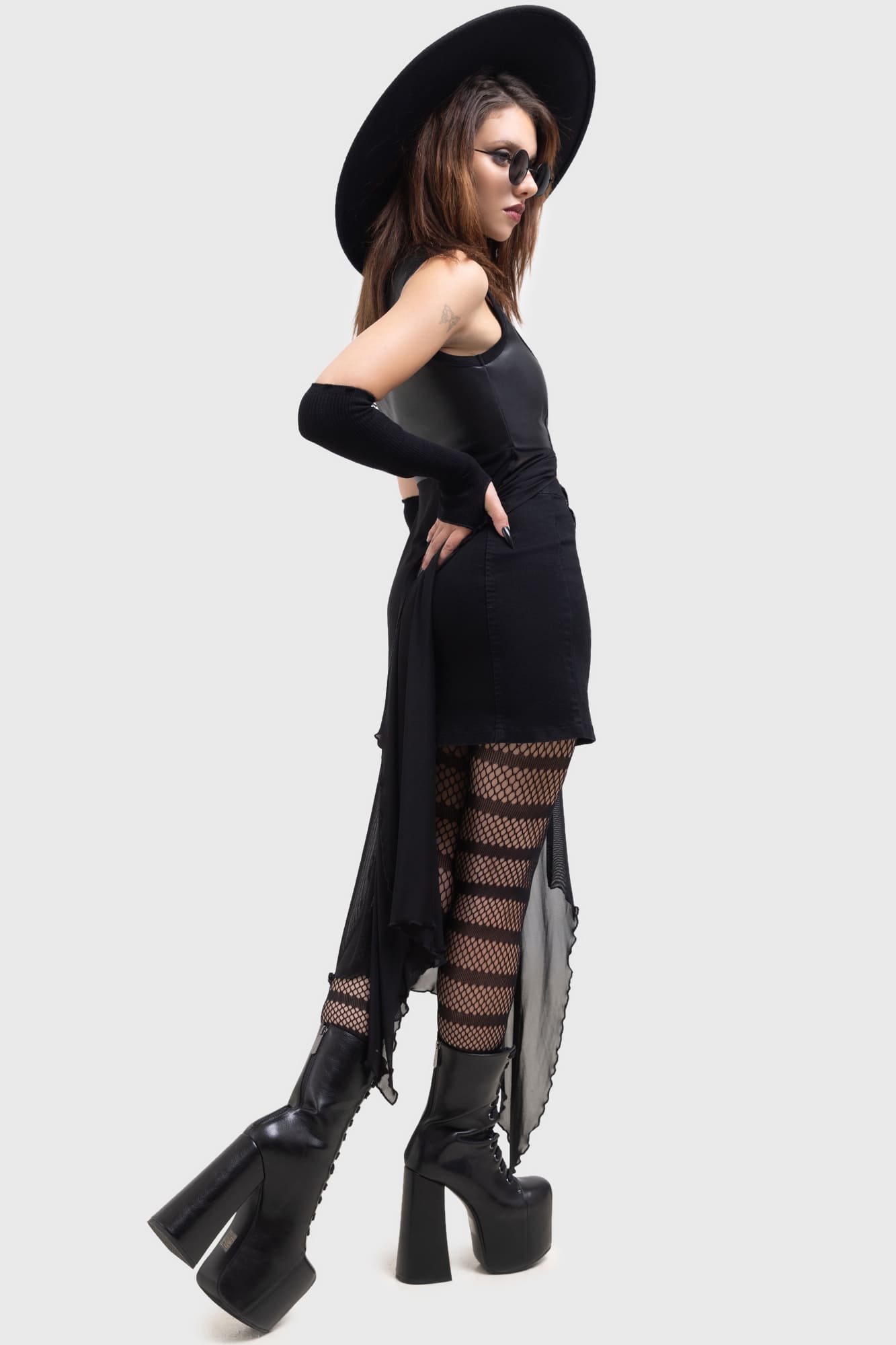 – Flowing mesh skirt.
