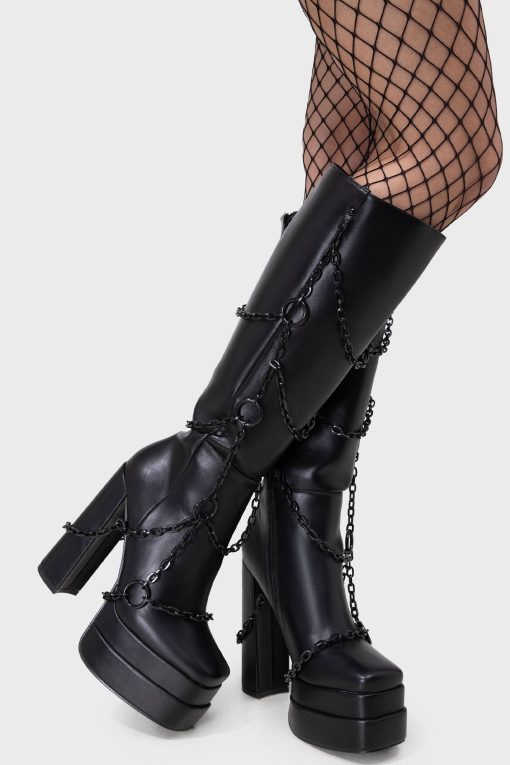– Knee-high twist on our classic ‘gloomed and doomed’ ankle boots.