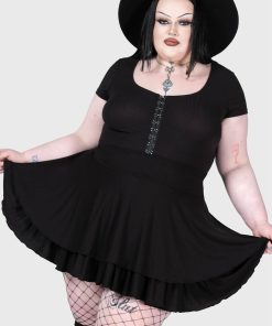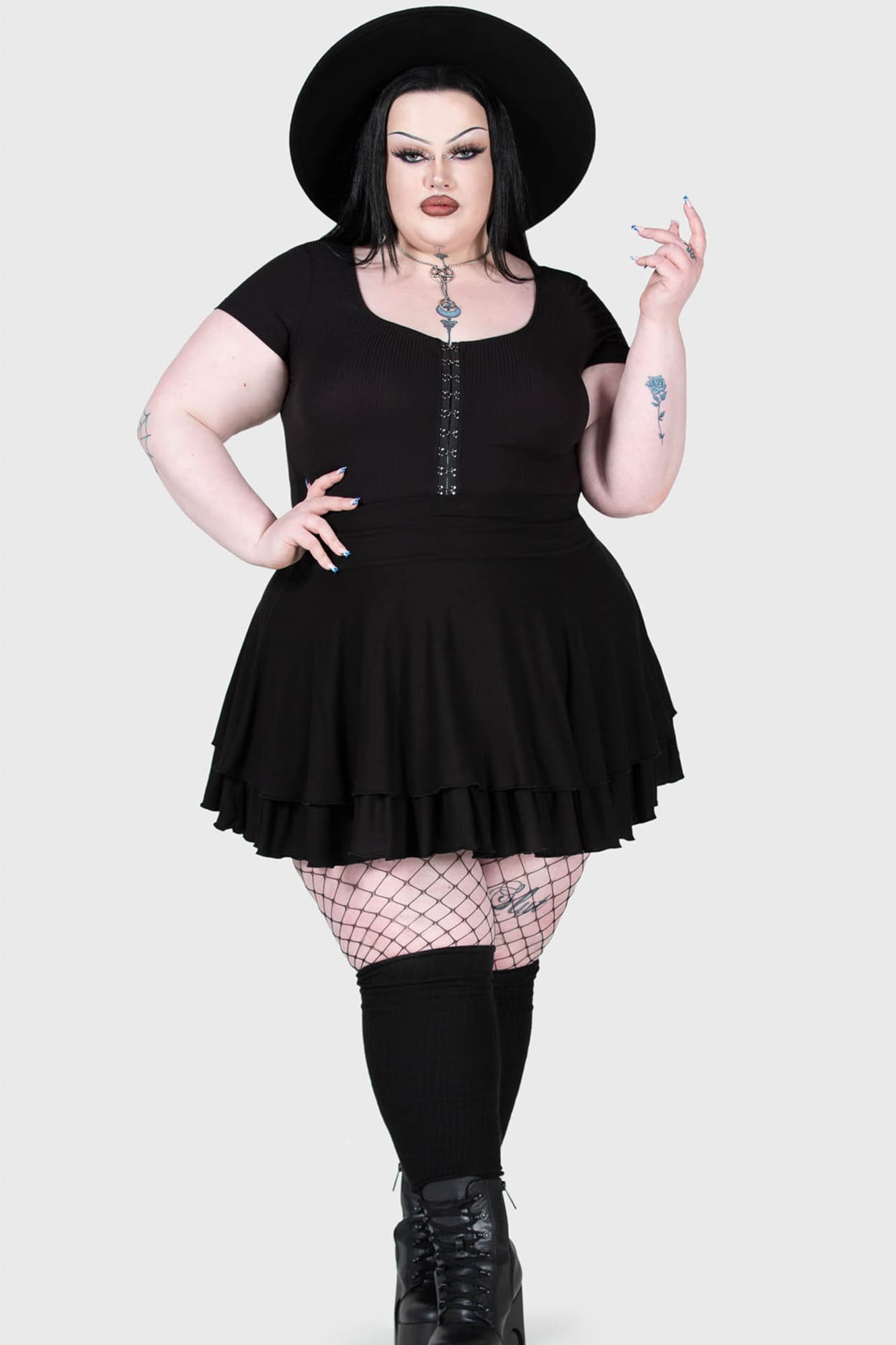 With KILLSTAR branding, Fabric 1: 97% Viscose 3% Elastane. Fabric 2: 65% Viscose 30% Polyamide 5% Elastane.