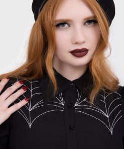 – Contrasting stitch embroidery detail on cuffs and shoulders.