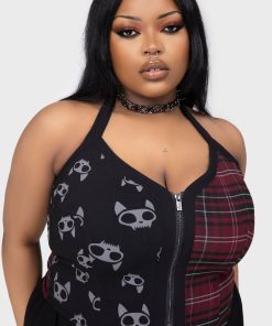 With KILLSTAR branding, Fabric 1 : 68% Viscose 28% Polyester 4% Elastane Fabric 2 : 72% Viscose 24% Polyamide 4% Elastane.